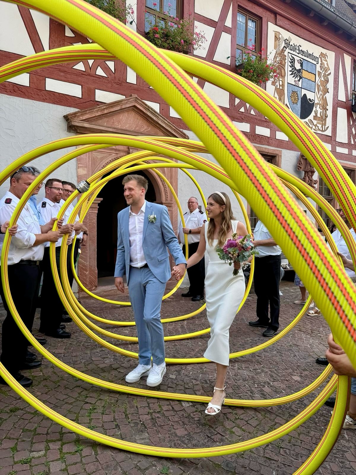 Am Freitag, den 15.08.2025 durften wir unserem stellvertretendem Abteilungskommandanten Christian und seiner Frau Elena zur standesamtlichen Trauung gratulieren.