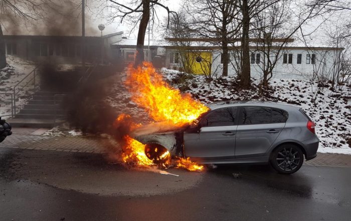 Beim Eintreffen stand der Motorraum bereits in Vollbrand. Es befanden sich aber keine Personen mehr im Fahrzeug.
